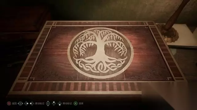 随后即可解开桌上的锁(按下图图案),拿到装饰板碎片。