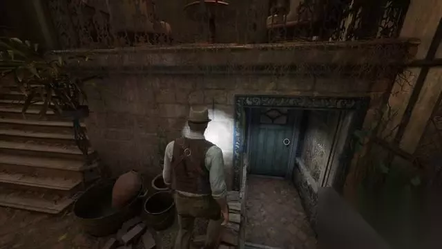 完成战斗后上楼,下图右转有收集品。 【备注】如果此前只吸引到两只敌人,这里右转会碰到第三只。