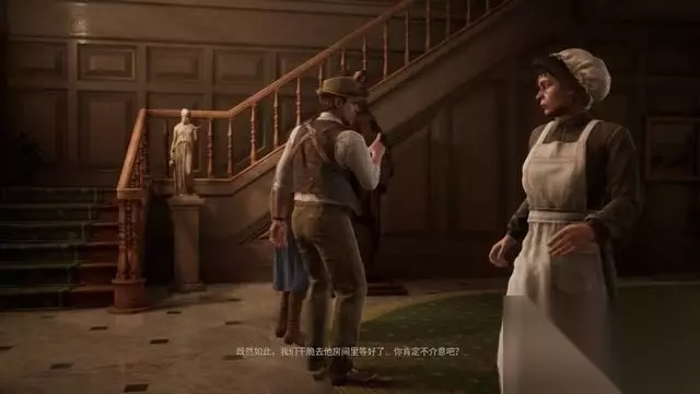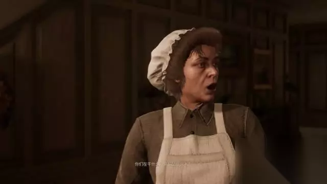 靠近大门后触发剧情,这时才见到庄园里的工作人员。