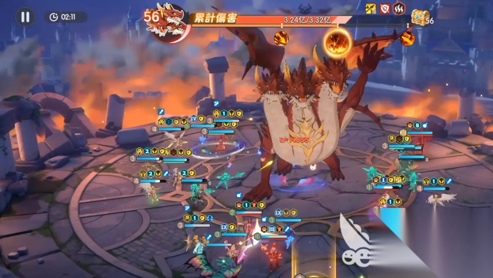 另外,每天的优势阵容都是不同的,每2个对应的阵容角色上场可以提升10%的伤害及减伤,最高上限是40%,所以大家可以尽量凑优势阵营来增加我方阵容的优势。同时还需要注意奥义的顺序,所以在战斗时最好是手动操作,这样可以保证增益效果的覆盖率。如果是自动战斗的话,要优先炎魔,其他角色可以根据情况来进行调整,只要在boss第一次蓄力的时候打断就可以了。