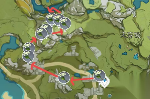 原神游戏中,清心是角色突破用的重要素材,分布点很少,采集难度不高,有些小伙伴还不清楚清心的具体采集地点在哪些地方里,以下是清心采集地点攻略,一起来看看吧! 原神清心采集点 采集路线: 路线点/1/无妄坡/>>>/数量9朵