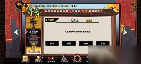 无悔华夏寻音之旅第三篇章的答案是什么?最新的寻音之旅答题已经更新,今天是第三篇章的题目,一共五个问题的答案233乐园小编全部已经分享在下面,玩家可以参考小编带来的攻略,了解清楚寻音之旅第三篇章的过关方法。 无悔华夏寻音之旅第三篇答案大全 五道题答案分别为:①箜篌、②葫芦丝、③鼍鼓、④春江花月夜、⑤唢呐