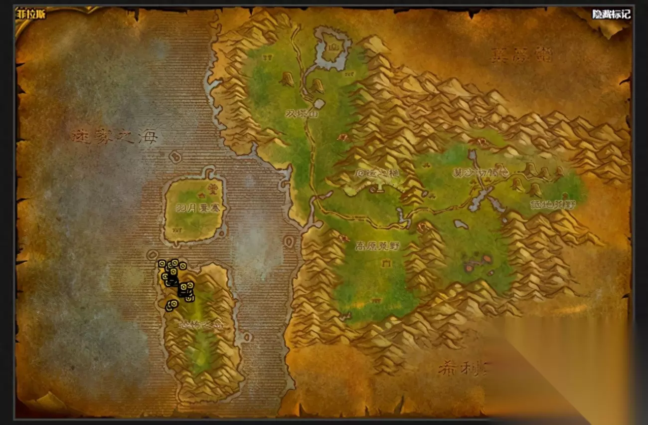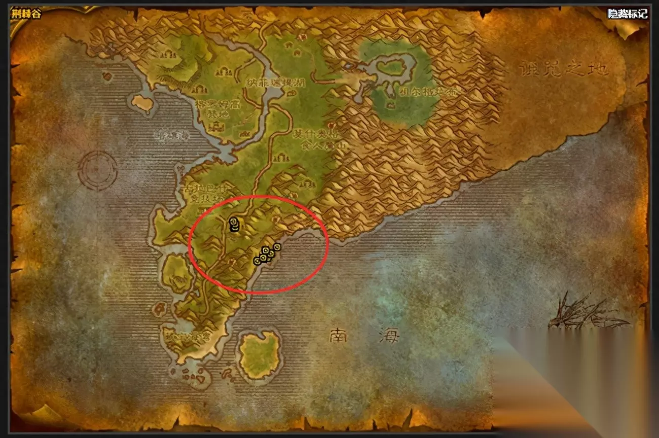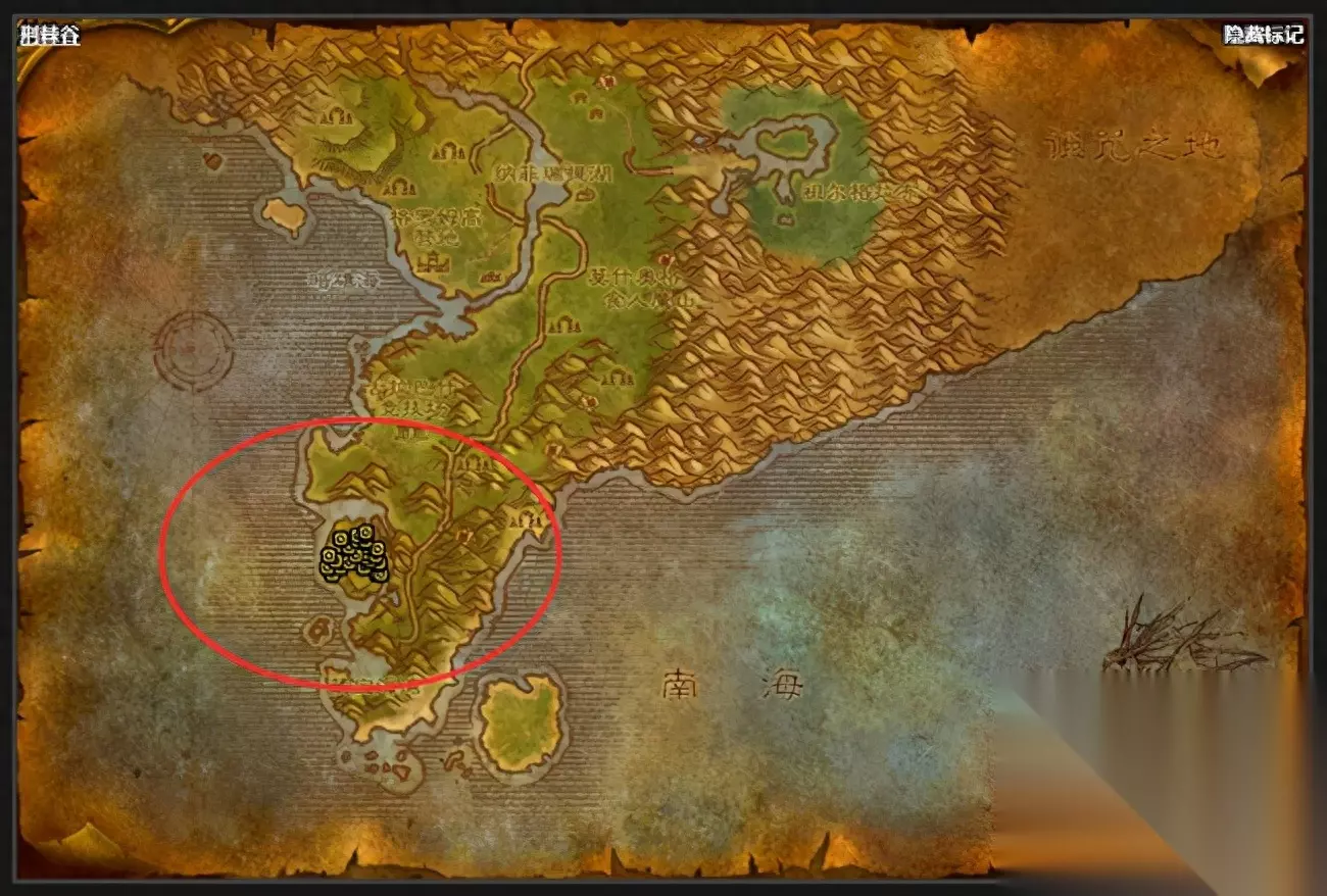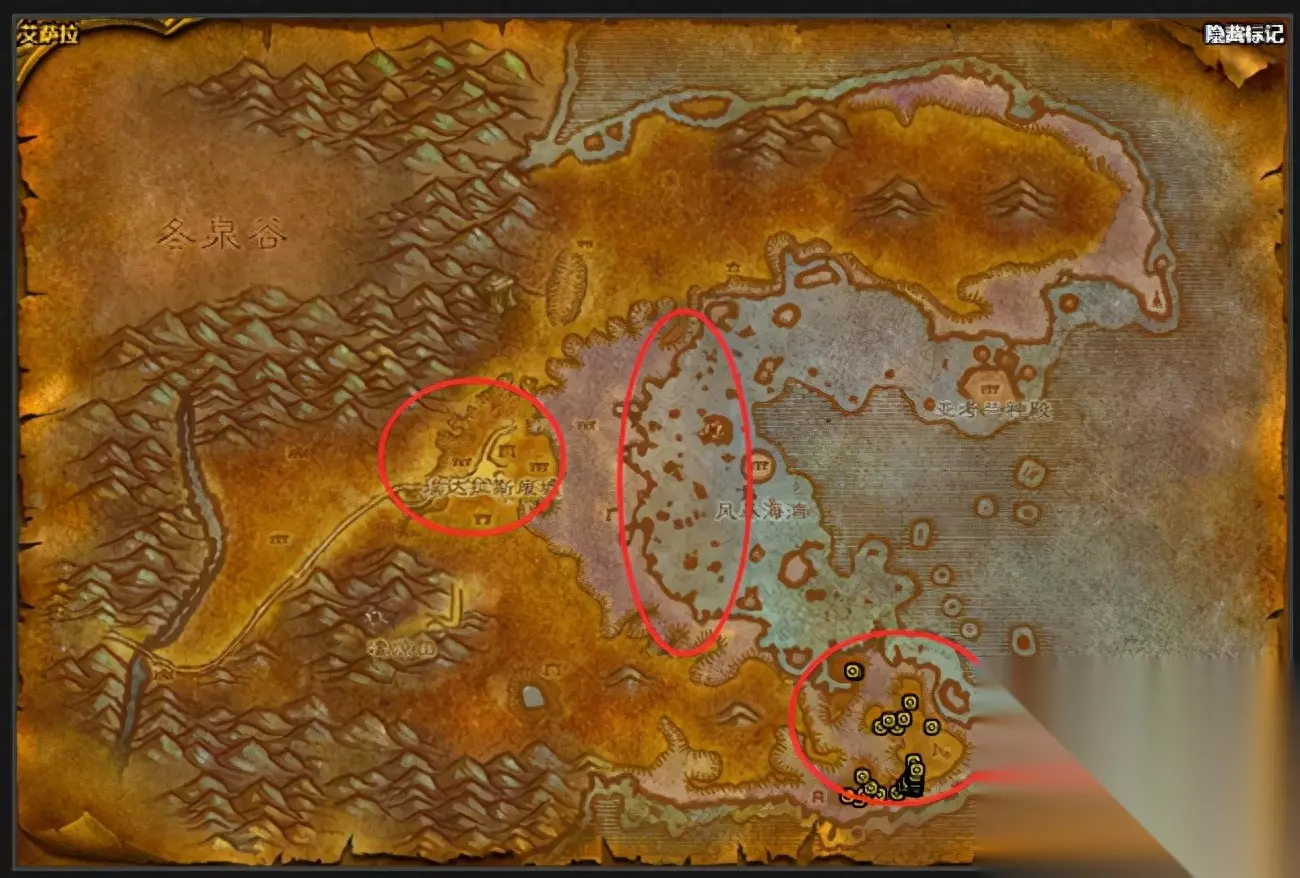 7.塔纳利斯 热砂港和海盗附近的乌龟太少,最佳地点是最南端的天涯海角,是地图隐藏地点,做藏宝图任务的要来这边。这里乌龟多且密,但视野很小,适合群A,也适合物理职业单杀。