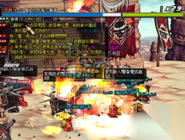 1.红色防御罩(防御准备):无视一切攻击,且攻击者受到3000~6000不等的伤害,并且不可抓取、不可控制、不可浮空、不会倒地。 2.黄色防御罩(强化解除,切换防御模式/不要再试图反抗):防御任何攻击,但兰蒂卢斯自身会收到10000点固定伤害值,同样无法抓取、控制、浮空、倒地。 3.精英追击者(真是棘手的家伙):开启红色防御罩时空降2个精英追击者,近身时会产生爆炸,被攻击者一击必杀,造成满伤害(7个9)。 4.改装:G-2旋雷者:兰蒂卢斯受到攻击时会召唤多个G2旋雷者从空中发射激光攻击敌人,机器人自动追踪玩家并造成持续的光属性伤害。 5.挥刀/冲刺挥刀:与兰蒂卢斯近身或在同一X轴上且在一定距离之内,其将挥刀攻击,被击中会进入高僵直并附加出血状态,且多会衔接第二刀。 6.火箭支援(发动突袭/请求支援):发动时,背景上的6个火箭炮台会发射火箭瞄准并攻击玩家,被击中会浮空。 7.冲锋枪:玩家与兰蒂卢斯位于同一X轴并距离大于挥刀所需要距离时,兰蒂卢斯伸出手臂上的冲锋枪进行火属性攻击,火力较为集中。 8.反坦克重炮:取出背后的反坦克重炮并下蹲发射一枚子母弹,炸弹发射一段距离后会分散成两个小型炸弹,追踪玩家,带有浮空效果。 9.手弩:发动条件同冲锋枪,但发射的箭矢为扇面攻击,范围更大,攻击略低,火属性攻击。 兰总的技能在上方,玩家们要注意的是兰总开盾的时候不能去击杀它否则会盛极而衰立刻秒杀玩家哦!玩家要利用兰总不开盾的间隙使用技能击杀才可以!这图的关键地方在于要和兰总比赛跑才可以哦!如果玩家伤害高的话可以立刻秒杀他,如果不够只能和兰总玩走位了哦!