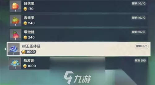 PS:大家和【NPC法伯德】对话也可以获得4朵树王圣体菇。 位置二:在恒那兰那的【NPC兰玛尼】处,1000摩拉/朵,限购5朵,每三天刷新一次。