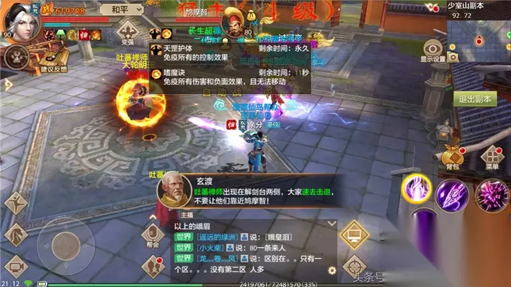 进入副本之后,击杀掉小怪,即可开启BOSS战斗,BOSS会释放各种技能,伤害较高,决战少室山副本难度较高,对走位、输出、治疗都有一定要求。