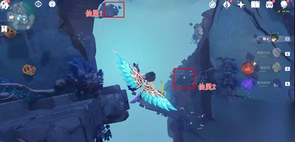 3、两个仙灵方位,从传送点飞下来就能看到,都在下面,将两个仙灵逐个带到仙灵台;