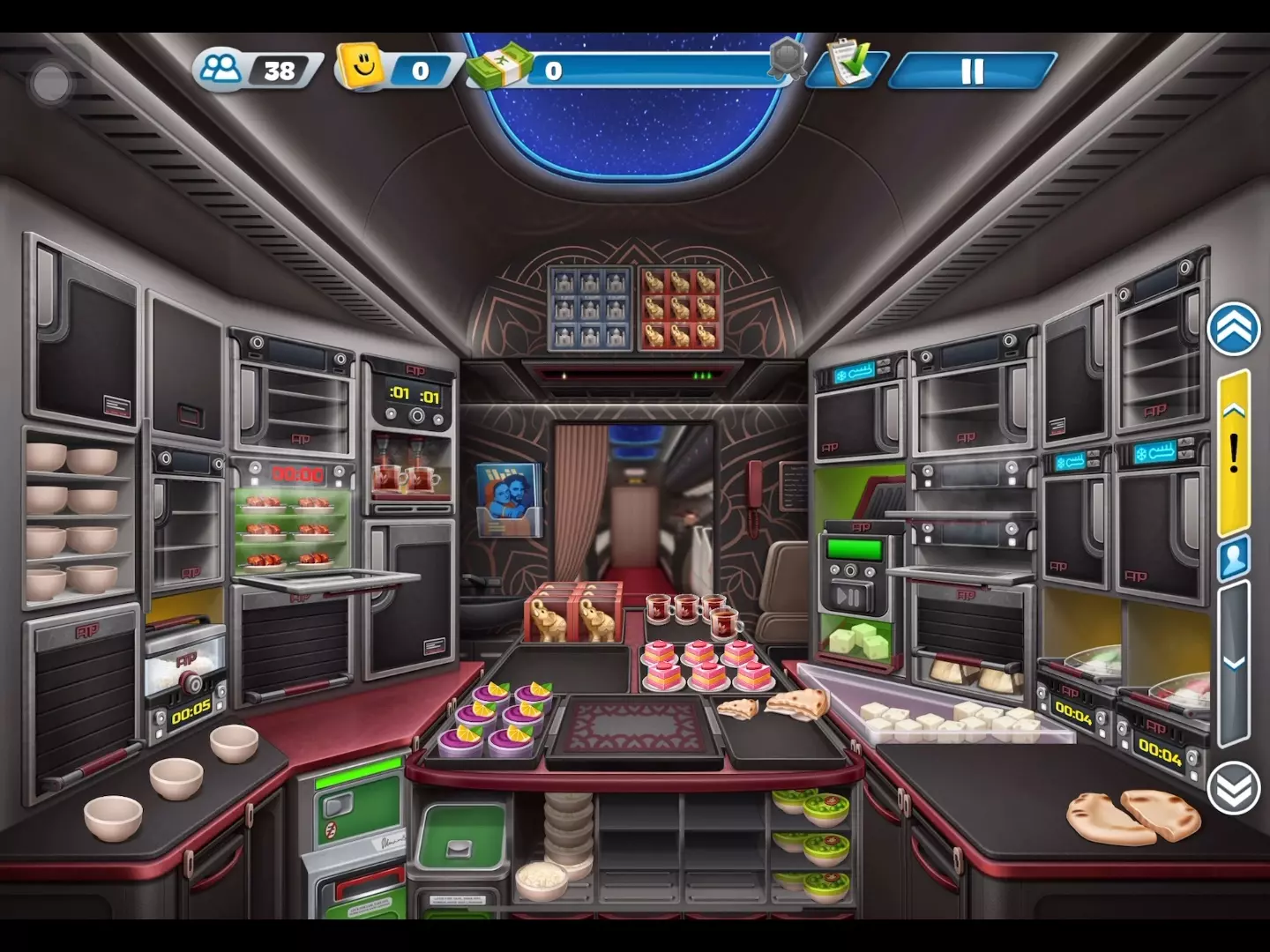 这是《飞机大厨》的游戏实况,展示了墨西哥关卡中满氪挑战超难的21-24关的过程,画面呈现了飞机厨房备餐、为乘客供餐的游戏场景,玩家需快速完成备餐和供餐操作。
