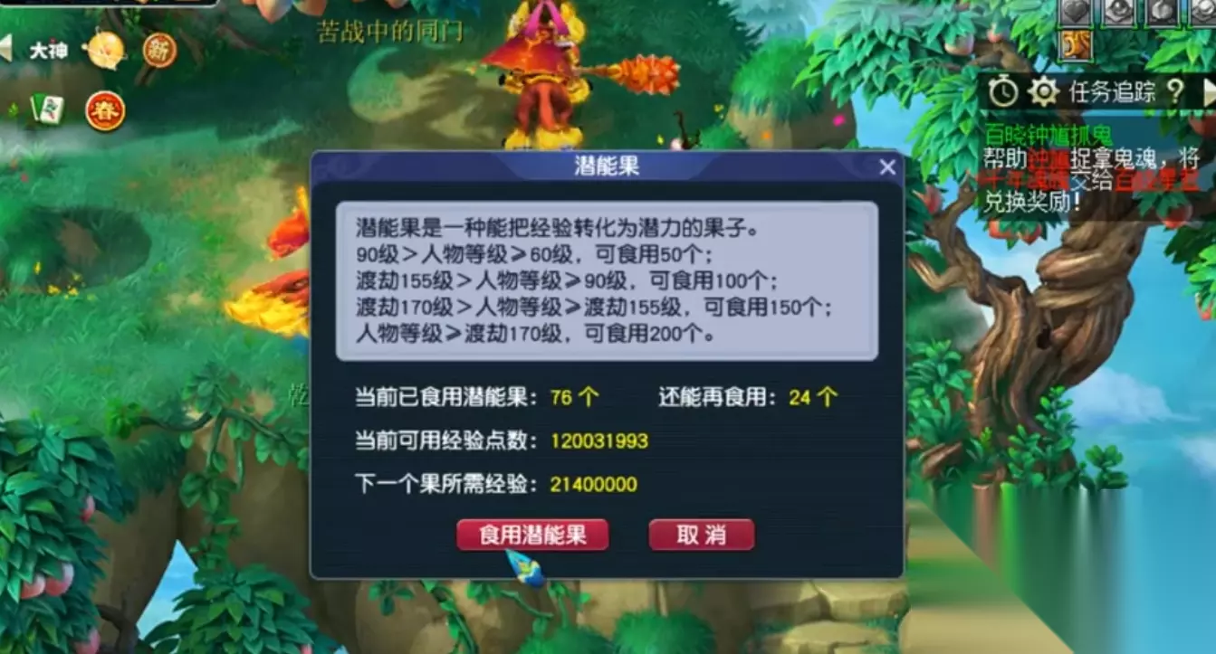 潜能果的核心作用是将你积累的庞大人物经验转化为永久性的属性点,从而实现角色实力的长效提升。潜能果系统提供了一种超越常规升级的属性增长途径,它允许玩家将暂时无法用于升级的经验存储并利用起来,直接强化人物的基础属性。获取潜能果需要通过特定的NPC老猕猴,他位于花果山(坐标145,106)的固定位置。