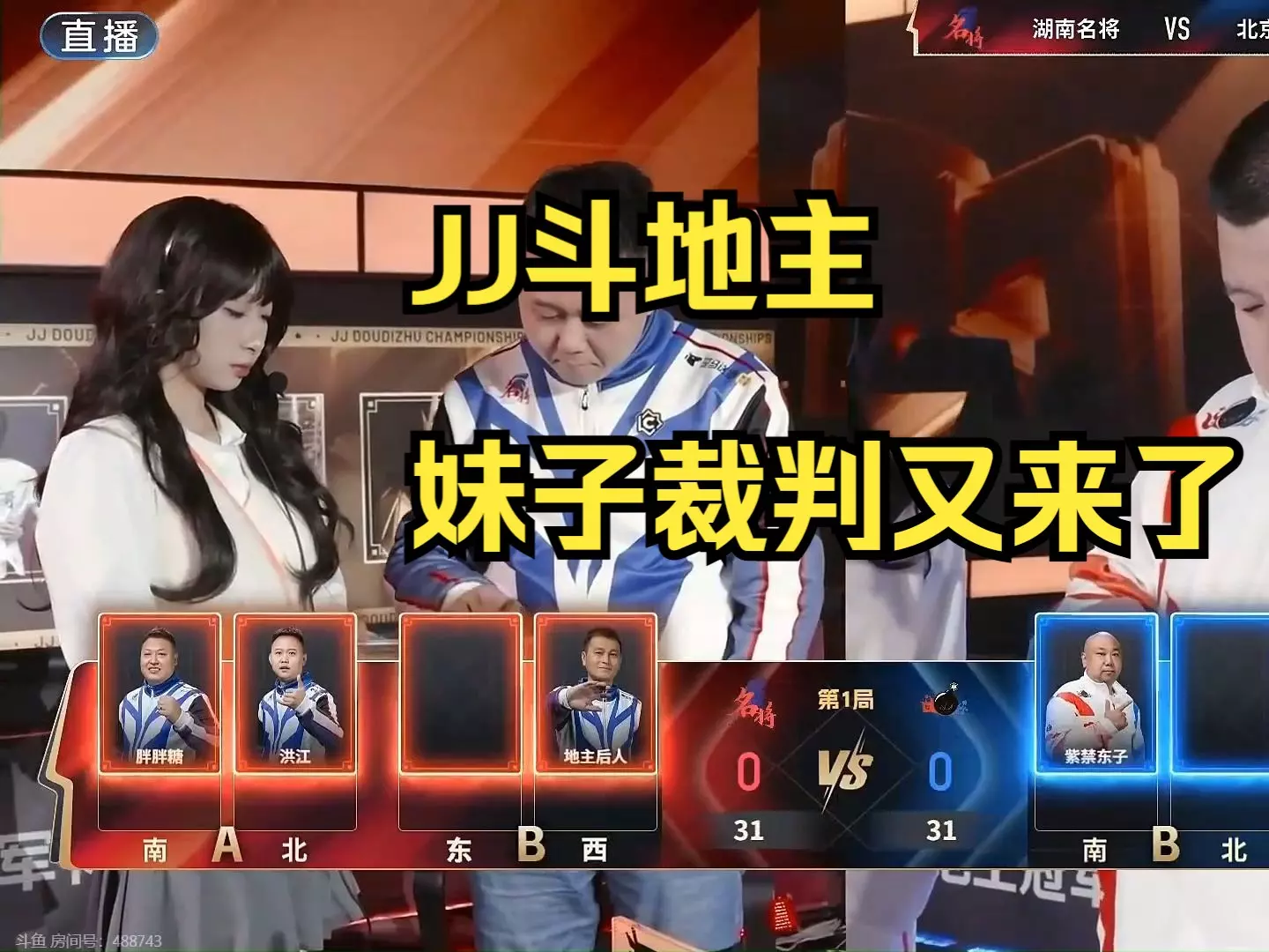 这是JJ斗地主比赛冠军杯的相关内容,展示了湖南名将对阵北京源莱慧热爱的赛事场景,还呈现了赛事里风格各异的美女裁判,视频来自官方剪辑。