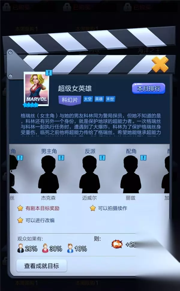 本周小编将继续为大家介绍电影节商店中第四排剧本的类型与拍摄强度以及是否值得玩家朋友们兑换。下面就让我们一起走进今天的票房大卖王攻略之《电影节商店剧本大盘点(四)》中去吧! 1.《超级女英雄》