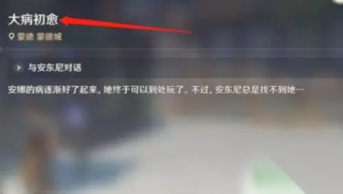 4.完成奇药庐中来三次后,在后续每日委托中会概率刷出《大病初愈》; 大病初愈是安娜病治好了之后人不见了,需要玩家去找她。有可能重复刷到该委托甚至相同地点而不触发后续,大病初愈中安娜有可能在以下三个位置(任务有指引):风神像上、风车上、教堂顶上。