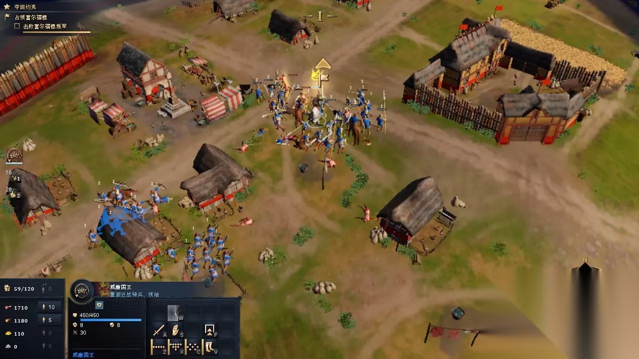 在实战中,玩家需要考虑的策略维度是非常多的,这一点可能会让非RTS核心玩家感到困难,但对于RTS爱好者来说则是甘之如饴的。首先是资源的规划,食物、木材、黄金、石材四种资源,在不同的阶段使用起来各有不同的侧重点,灵活地调度村民去集中采集当前发展阶段更急需的资源,往往比四种资源都平均人手采集要更合理。与此同时,玩家还需要考虑在不同的阶段出什么兵,这不仅要看自己的战略计划和经济现状,还需要通过侦查对方来了解对方的主力兵种,然后根据具体情况做出调整。有些RTS里可以强势兵种直接爆兵到满然后一波A过去,这一点在本作里是很难奏效的,“骑兵-弓兵-枪兵-骑兵”这一经典的克制循环链条依旧是非同小可的。除此之外,地形要素的加入更加丰富了兵种的操作技巧,比如弓兵占据高地地形可以更有效地输出,丛林地形可以让步兵单位对敌人进行伏击。