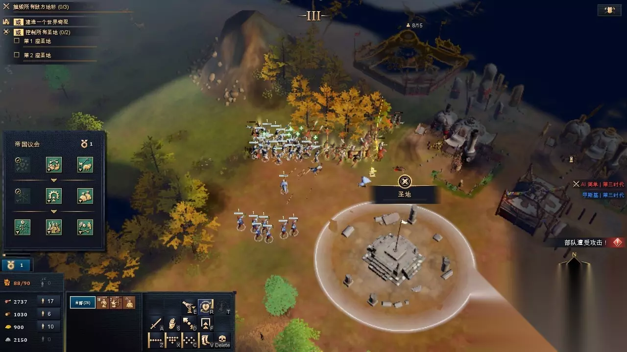 不过好在本作的单机玩法够丰富,AI的难度也能自由调整。以挑战关卡为形式的战争艺术模式算是进阶版的新手教学,每一关都有明确的目标,非常适合玩家用以磨练对战中某个具体的环节。比如战争艺术模式第一关就是给玩家练习资源采集的调度策略,后面则会有战斗微操、兵种相克等内容,非常适合玩家有针对性地自我练习。正因如此,《帝国时代4》的上手门槛还是比较友好的,只是需要玩家花费一定的时间去熟练。