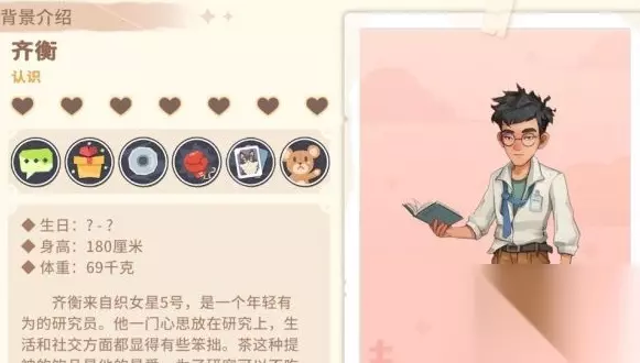 齐衡来自Vega 5,是一位年轻有为的研究员。他只专注于研究,在生活和社交方面显得有些笨拙。茶这种清凉饮料是他的最爱,他会几天不吃不喝地学习。