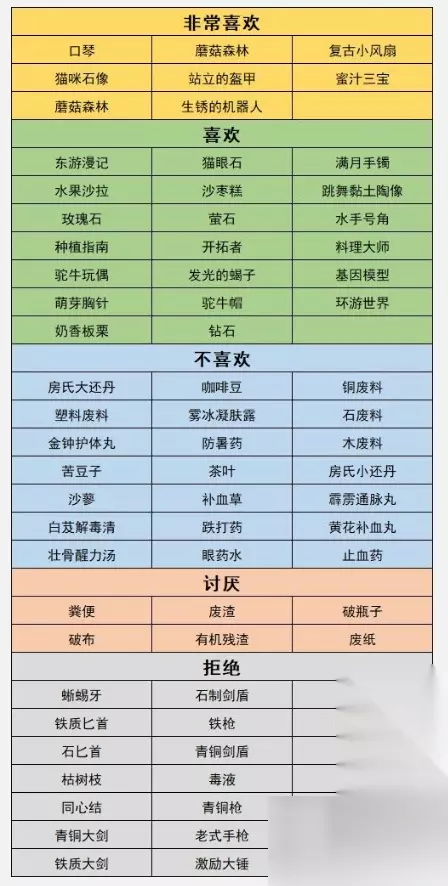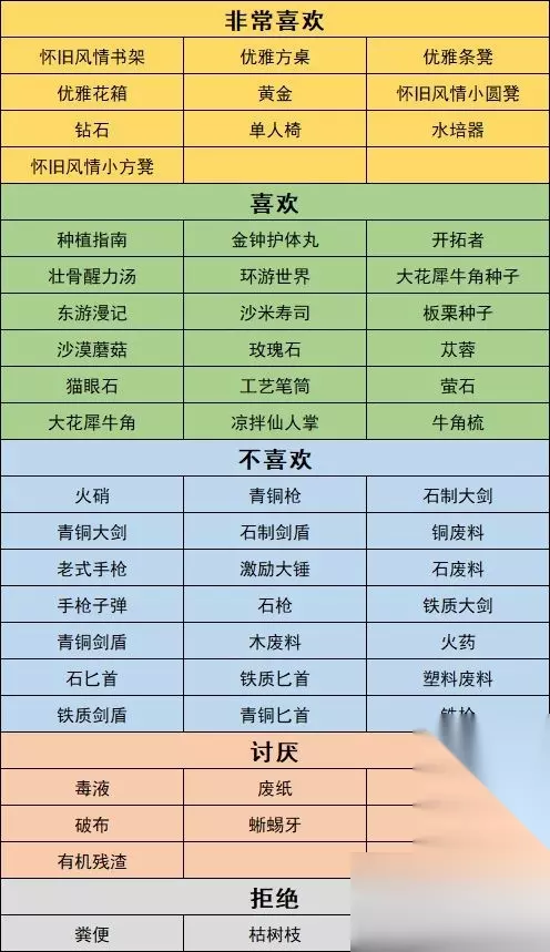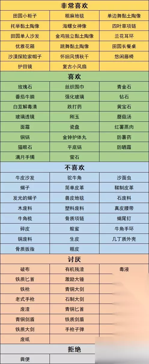游戏《砂岩镇时间》中有很多角色。玩家可以在游戏中遇到这些角色。这些角色将有一个好感系统。玩家可以送给他们自己喜欢的礼物,但是不同的角色喜欢的礼物是不同的。是的,大家可以参考小编接下来给大家带来的游戏攻略。