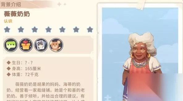 薇薇奶奶是胡果的母亲,也是海蒂的奶奶。她经营一家裁缝店。她是一位慈祥的老妇人。善于倾听并提出合理建议。有时候她保护所有人的欲望太强烈,让人感觉太热情了。