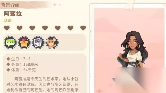 阿米拉是一位天生的艺术家,她从小就对艺术有着独特的见解。由此,他也对陶器产生了兴趣,并开始自己制作陶器。她的陶瓷作品逐渐名声大噪,并风靡砂石镇以外的其他地方。