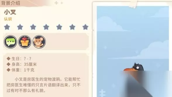 小茶是方博士的宠物乌鸦。它可以帮助翻译方博士难以理解的短语,但有时不太礼貌。
