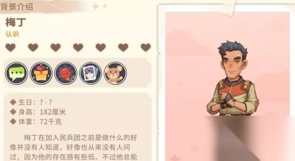 似乎没有人知道梅丁在加入民兵之前做了什么,也似乎没有人问过,因为他的存在感有些低。不过,他总能完成贾斯蒂吩咐的任务,这也让他的存在感更低了。