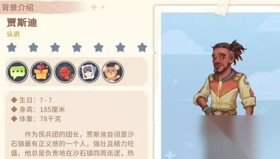 作为民兵首领,贾斯蒂自诩是沙石镇最正义的人,身体强壮,精力充沛。他总是负责任地在沙市镇周边巡逻,热心为镇民提供力所能及的帮助。