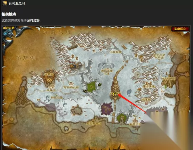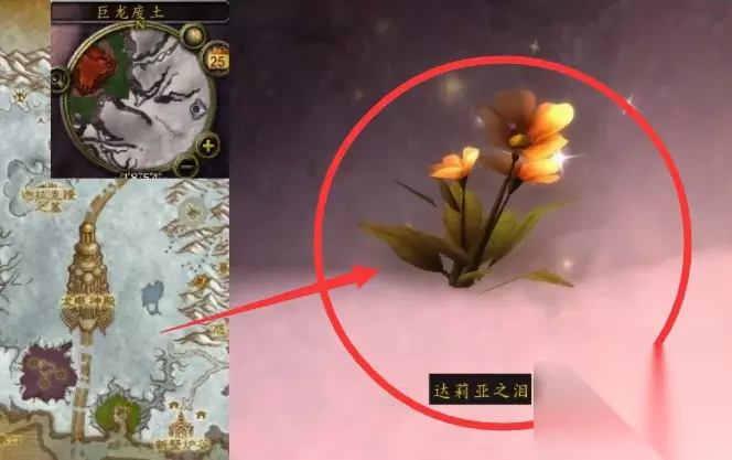 达莉亚之泪在哪里? 答:达莉亚之泪的具体位置是在龙骨荒野。 达莉亚之泪就是在龙骨荒野,具体在巨龙废土地图中,可以找到达莉亚之泪。 在巨龙废土到红玉龙圣地进口出有一个像花草的东西,具体坐标是在51.52左右。需要注意的是,必须是红玉守护者,也就是天上的那只龙喷过地面之后才能收集到任务物品。 如果龙没有喷火,就帮那群NPC打下地上的亡灵,亡灵清理完之后就会喷火出任务物品了。 属于“小剧情”类任务。达莉亚之泪长的跟花草差不多,会冒光