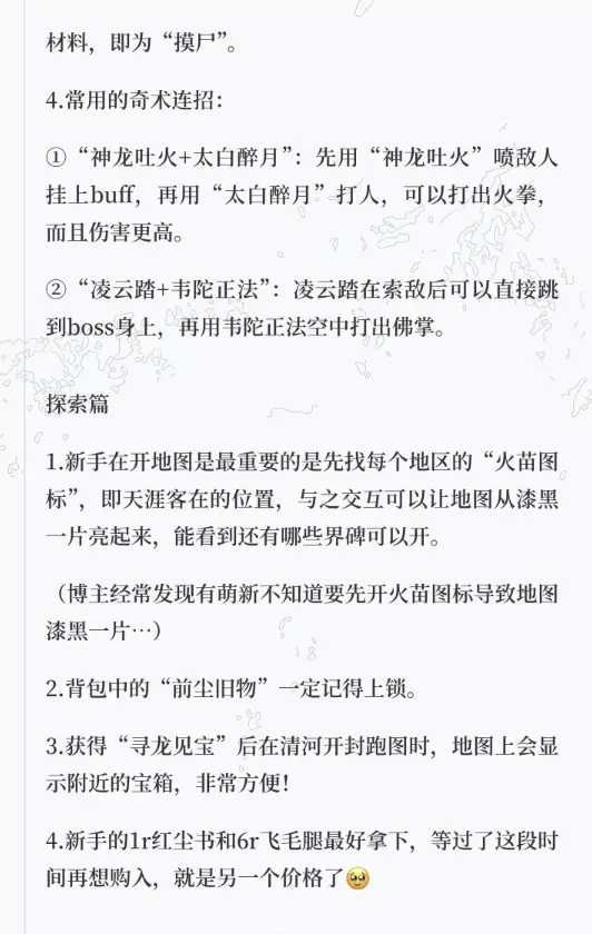 博主在探索地图时经常遇到萌新宝宝踩到一些小坑,整理出了一些放在图片中,大家如果有想补充的或者疑问也可以在评论区提出。