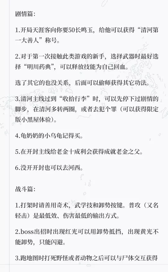 1.开局天涯客向你要50长鸣玉,给他可以获得“清河第一大善人”称号。