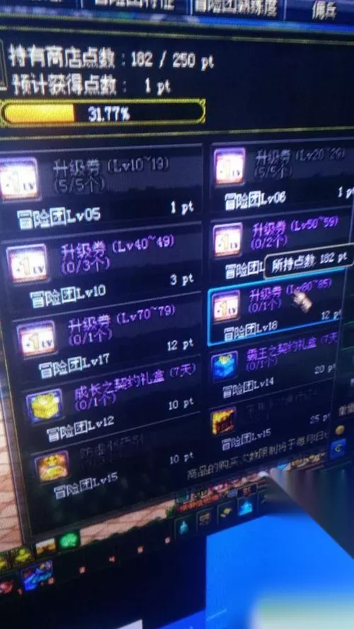 6.我们还可以通过吃升级卷来升级,升级之后我们就可以将这个任务自动清掉了完成。升级卷在冒险团商店有。