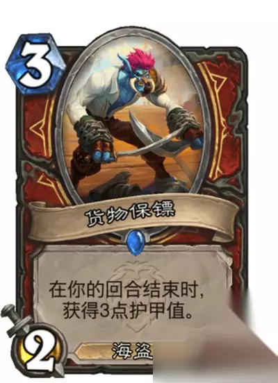 货物保镖是一张我比较纠结的单卡,贵为海盗3费随从,身材也还可以,不过也只是还可以,效果并不是对于海盗战很有用的效果,但是因为现在标准的海盗池并不深,可用的海盗不多,这张及格的单卡没办法扔出去。