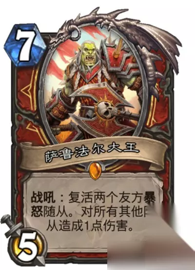 因为545海盗石槌掌舵手和克雷什是非常优质的暴怒卡,所以带上萨鲁法尔大王会有很高的收益,而且这一张卡就可以补强海盗战后期的质量了,虽然克雷什看起来并不适合海盗战,但是亡语10点伤害,如果有加攻就更厉害了,还有8点甲对于需要卖脸的战士来说虽然不那么重要,但绝对不会差,这样全方位的一张强卡,真的舍不得不带啊,现在的海盗战相比以前,前期稍弱但后期更强,这些都是十分优秀的过渡卡。