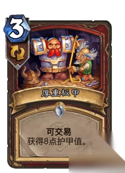 挑衅和厚重板甲放在一起说,这两张可交易的单卡首先肯定不适合海盗战,应该可以进入防战构筑,只不过防战的强度堪忧,新版本并没有太多对于防战的补强,只是一个叠甲手段可能不够。