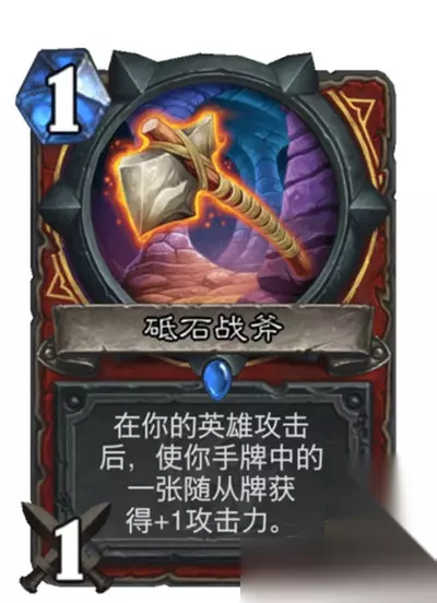 先说说小版本出的新武器砥石战斧,我个人是非常喜欢这张卡的,因为虽然任务是起手必有的,但是现在海盗战的1费2费曲线并不优秀,不少2费还是要与刀配合的,那么这张1费的武器就尤为关键了,而且有血帆浆手配合的话可以直接提刀,本身的加攻效果也很优秀,虽然没有前锋战斧的过牌效果优秀,但是因为4费刀目前节奏一般,而且我觉得海盗战过牌已经足够了,跳水抽突袭,藏品抽刀,海盗过牌,如果带大王还有一波过牌,作为一个节奏卡组,这样的过牌速度已经足够了,而且作为现在战士耐久就高的可构筑武器牌,配合新的武器加攻海盗棘齿城私掠者,收益也是最高的。