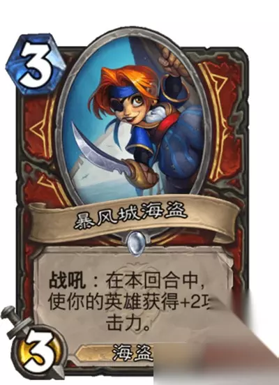 暴风城海盗,也是一张朴实无华的3费功能海盗,对比于军情七处特工,可以用于前期补刀抢节奏,好卡。