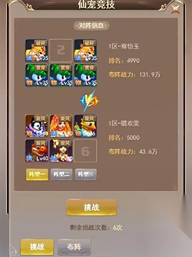 值得一提的是,作为进攻方我们是可以看到你选择的对手的仙宠、排位和技能的。这就是一个机会,让你通过制造出克制对手的布局去战胜对手!这可是战力与策略的最高挑战!用我们最爱的仙宠,去迎接最强大的对手,若胜利了那份满足感可是无可比拟的!这就是让人又爱又恨的仙宠竞技场!不过注意每天只能挑战6次仙宠竞技噢,若想继续需要通过购买次数实现。
