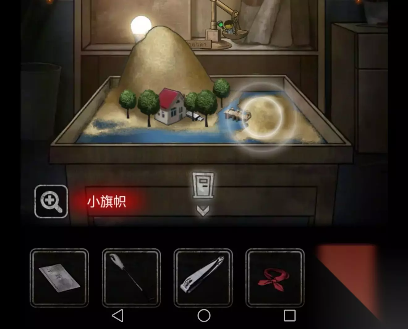 7、我们把眼球放在水池,让眼球绕红色区域跑一圈。 8、然后我们从右侧拿抹布,在洗脸池打湿抹布和海绵。 9、最后我们返回右侧,用假肢,再放湿抹布,点击组合擦窗户,获得镜像密码:5823,打开电脑桌抽屉。胶带粘好碎纸,获得电脑密码638264即可过关。
