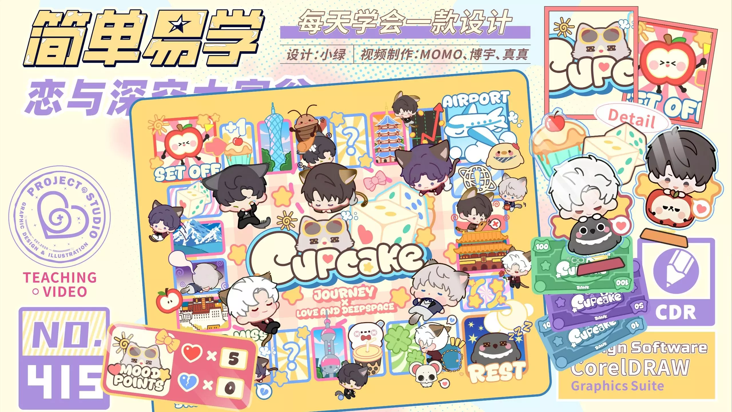 制作过程不易,喜欢请给老师们👍🏻 日更你们喜欢的设计教程,关🐷老师不迷路💓 2分钟带你看恋与深空大富翁设计 ✍今日的学习清单: ✅整理设计思路 ✅字体设…