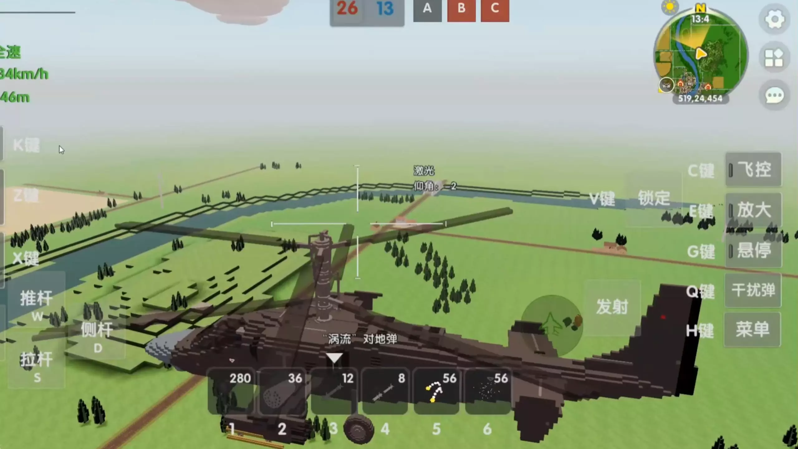 地图:现代地空战5 作者:高迪 此视频为迷你世界游戏中的现代地空战5游戏对战地图中的红队的Ka-52武装直升机的操作演示