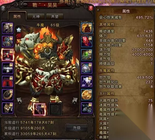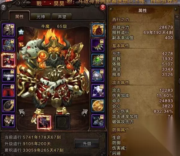 2月2日开启了黄风岭、万寿山、鹰愁涧、流沙河、五行山、福陵山服务器的数据互通,这么多大区合在一起,那必然是卧虎藏龙、高手辈出的啦。但是合区之后出现一位多次蝉联牛魔大师兄的大神!那可谓是双线一最强没有之一的牛魔大师兄咯!今天就给大家带来双线一区最强牛魔大师兄戰ˇ·昊昊! 记者:大师兄你好!听说合区后啊,您一直蝉联大牛魔大师兄,实至名归啊! 戰ˇ·昊昊:嘿嘿,不敢不敢.我是很喜欢PK的。 记者:大师兄您是什么时候开始玩斗战神的呢? 戰ˇ·昊昊:应该是13年7月多的时候,那时候刚开流沙河,每天下班排队要好久才能进。 记者:那您一开始为什么选择牛呢。。神将那么帅气,灵猴也是主角。 戰ˇ·昊昊:我同学和我说牛厉害,能打能抗。结果玩了才知道被骗了,当时的牛不是一般的弱。不过还好后来牛魔加强了。我也感觉只要路走的对,牛魔就不弱,也是懒得换职业了,刷经验太累。 记者:现在大部分人都是属性武器 。你怎么还在坚持无属性呢? 戰ˇ·昊昊:我是从60的时候就一直用着白武,现在是属性武器占主流 ,但是我要改属性武器 放弃的东西太多。再者是我用白武 , 防御方面可以提高一些 ,能更抗揍! 记者:那你是从什么时候开始走PK的,是从玩这个游戏开始就想玩PK的吗? 戰ˇ·昊昊:我是13年跟了一个叫小坏的神将 ,他教我怎么做PK装。他最大的爱好就是和妹子聊天,聊的我都听不下去了。 记者:你这么黑他,不怕他揍你么?他教你做PK装 那么 PK技术你是怎么练得! 戰ˇ·昊昊:我俩打过一个通宵,谁也揍不死谁,所以我不怕!我PK技术纯粹是自己琢磨的,我的PK点经常换,换了之后就找宗派的人去矿洞练。 戰ˇ·昊昊:说真的 现在很多人走属性路线 无属性武器打人会不会很吃亏? 记者:不会啊 , 你看这几次宗派大赛我也没吃亏啊。好像就我一个是白武器吧! 戰ˇ·昊昊:因为我是从60级就开始走白武 鞋子 裤子我都选会心率 然后暴击也堆起来! 我抗揍的最大原因是我的帽子浴火冠 。挑杀这个技能 玩牛的人都懂 虽然说套装是加旋龙杀80%伤害 但是挑杀后的属性增加太可怕了。这东西太稀缺了 ,低级版本有杀旦和 空心 但是不能打真言。 记者:浴火冠 我发现很少有卖呢! 戰ˇ·昊昊:这个真没有。。。我就见过两个 一个是我自己的 一个是个小牛裂隙掉的。我就靠这帽子活着呢 哈哈。 记者:无属性装备你有什么给玩家们推荐的呢? 戰ˇ·昊昊:这个看职业 电骡和元素神将肯定首选是电武器 ,因为技能有加成!走无属性的话 会心率 会心伤害一定要堆。伤害加成也要有 。我是因为换了个阿玉宝宝所以自身伤害到了15%。话说我在这里可以说个小小的心愿吗? 记者:可以啊 。 戰ˇ·昊昊:希望手惨罗戰ˇ·涵儿℡麻溜的回来 ,我天天给他签到。 记者:这是你爱慕的妹子么?大神。。 戰ˇ·昊昊:不,这是爱慕我的妹子。另外加上一条给我哥们戰ˇ·潇然℡找个老婆。 记者:好的 好的,哈哈。。那接下来我们看下大神的面板。 合区之后出现一位多次蝉联牛魔大师兄的大神!那可谓是双线一最强没有之一的牛魔大师兄咯! 面板展示: