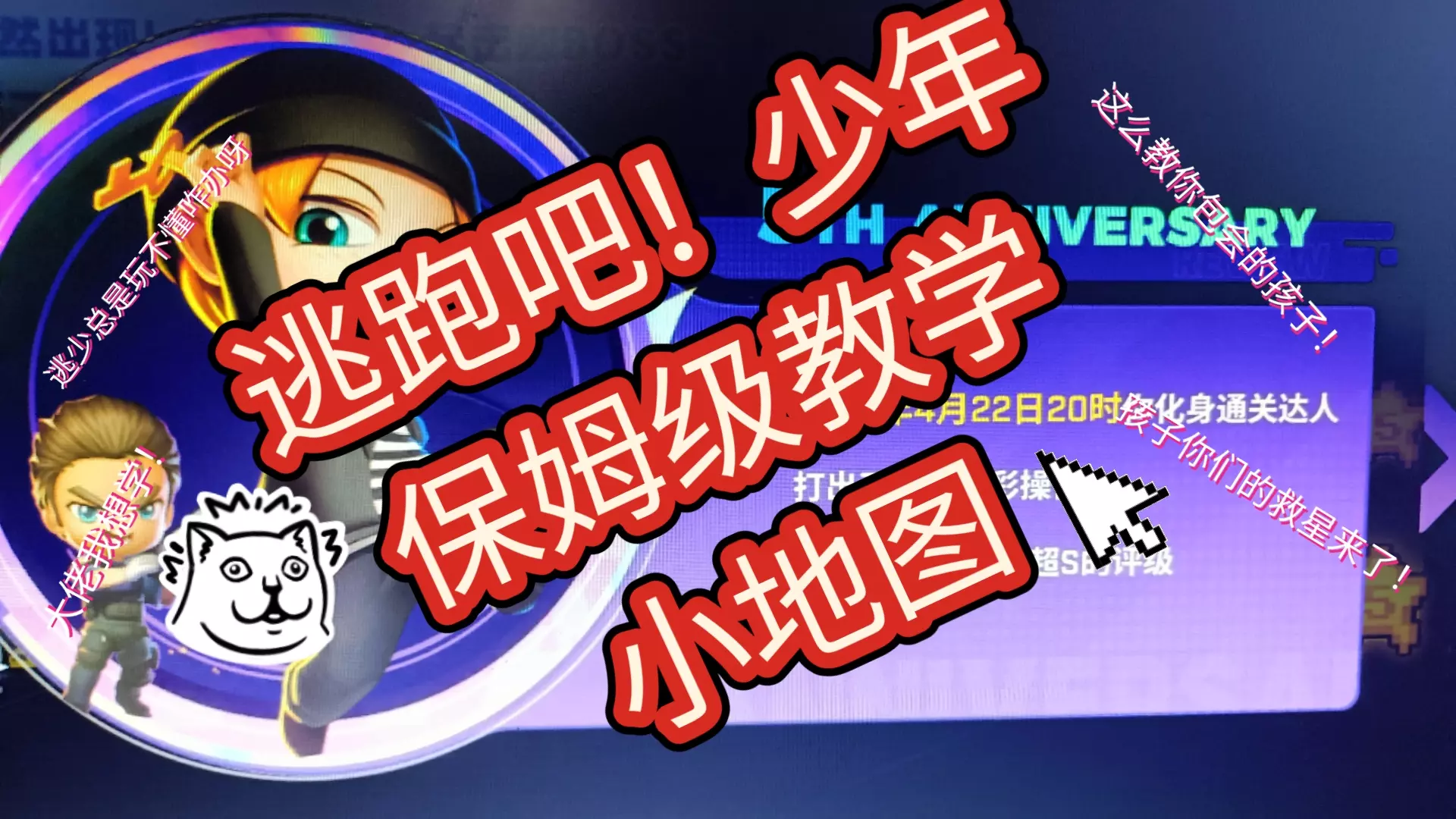 这是《逃跑吧!少年》的游戏内容,展示了4v1逃生玩法的实战操作,分享逃生技巧,提到逃生方的大标能快速击败追捕者,还展示了玩家的逃生战绩,提及版本匹配机制对玩家数量的影响。