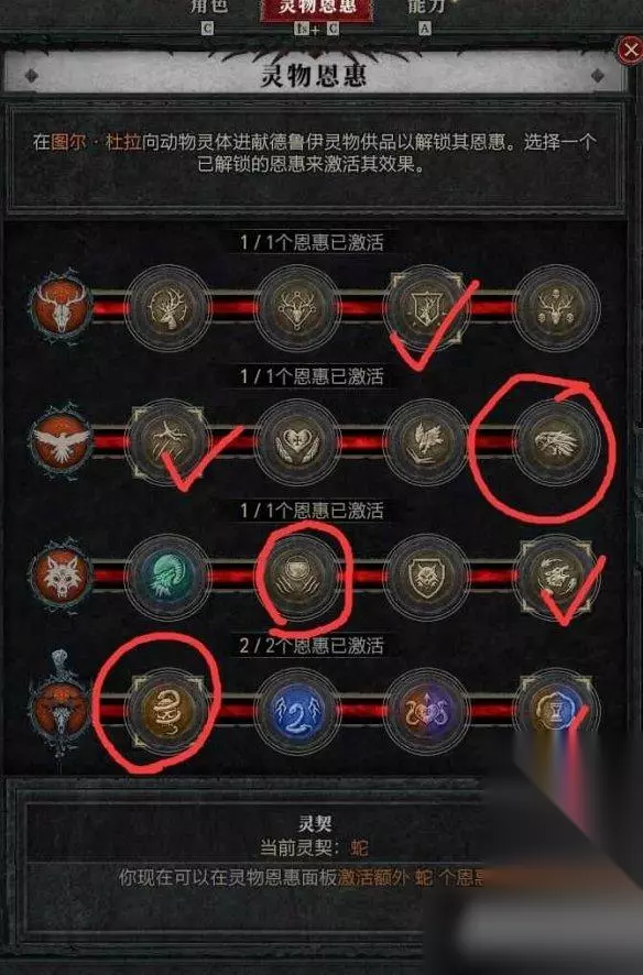 灵物恩赐 对号为前期必选,中后期可以鹰的改爆伤,其他画圈的可以根据个人喜好自选。