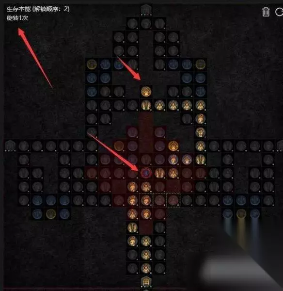 生存本能需要旋转一次,因为我们从下方往上点刚刚好可以拿到大量需要的智慧点,点支配符文,拿到压制增伤。