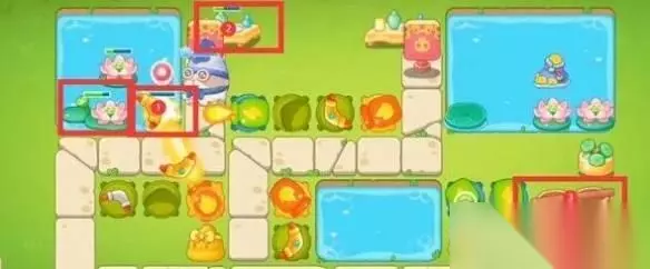 2、第1波先打上面的障碍物,延迟时间,再打兔子。