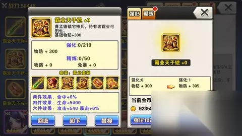 武将的装备获取也是非常让玩家头疼的意见事情,装备分为绿色装备、蓝色装备、紫色装备、黄色装备、红色装备! 装备除了通过普通关卡获得外,更多的高级装备就要通过血战商店慢慢使用血战币购买积攒了!想要筹齐一整套套装难度也是非常大的! 当然土豪玩家可以使用钻石直接购买各种装备礼包,这样很快就可以集齐各种高级套装。 关于装备的强化与精炼