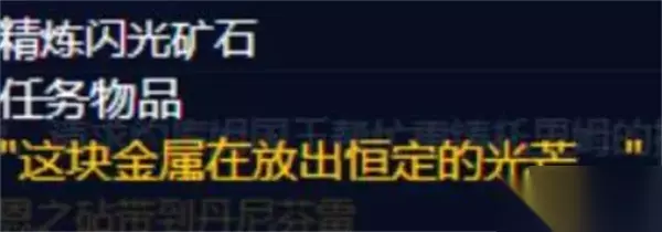 2、获得任务道具【精炼闪光矿石】。