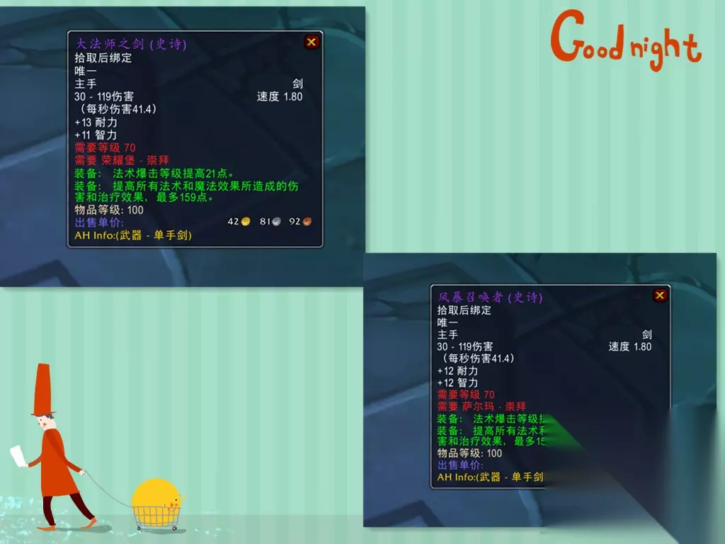 现在因为破碎大厅改版,地狱火半岛的声望刷到崇拜也变难,不少玩家都放弃了“大法师之剑”和“风暴召唤者”这两把入门武器。特别是那些专业的带小号的法师们,更不会去花费时间刷声望,必然会选择其他武器代替“大法师之剑”和“风暴召唤者”,而替换的武器还不能在副本里面,所以只能在拍卖行里了。