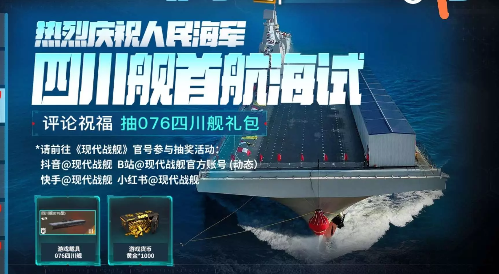 快去游戏里面抽076四川舰礼包。