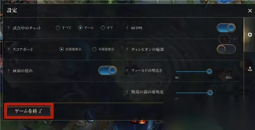 第二步:来到设定界面后,点击左下角的游戏游戏结束(日服)或SURENDER(美服)。
