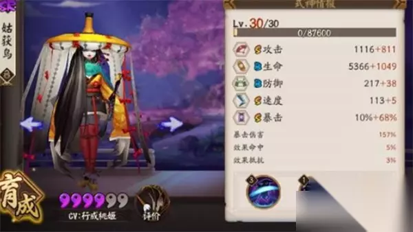 二、御魂属性推荐 一号位:固定攻击。 二号位:速度(推荐)。 提高出手顺序,确保先手释放大招,适用于PVP与PVE双场景。 三号位:防御(固定属性位,防御值收益更高)。 四号位:攻击加成百分比。 中后期收益极佳,可显著提升整体输出能力。 五号位:生命或生命百分比。 兼顾一定生存力,避免被秒杀。 六号位:暴击百分比(核心)。 配合暴击套装轻松突破60%暴击率,是姑获鸟伤害爆发的关键。