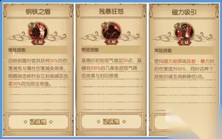基德的核心天赋(满级效果) 钢铁之盾: 该技能很大程度上可以增加基德【吸引 · 守护】在场上的硬度,而【吸引 · 守护】的最大作用,可以有效的克制米霍克、甚平等角色的直线型伤害,并且如果击碎【吸引 · 守护】,攻击者还会被立刻削减20%当前的生命值,无论是坦克还是输出,都是非常棘手的存在! 残暴狂怒: 不愧是在原作中脾气暴躁的基德,这个天赋加满后,初始怒气会增加50点,相当于自带10级怒气宝石效果!这也能帮助基德可以在第一回合直接打出奥义技能! 磁力吸引: 这个天赋最重要的其实不是增加的伤害,而是消耗魂玉减少一点的效果,如果没有这个效果【反射 · 暴力】默认是消耗6点魂玉(额外的2点是后续点出了眩晕效果),而有了这个效果是5点魂玉,这直接影响到你第二回合能不能直接放反射 · 暴力晕对面一个人! 技能搭配 —— 首回合奥义 + 次回合范围输出